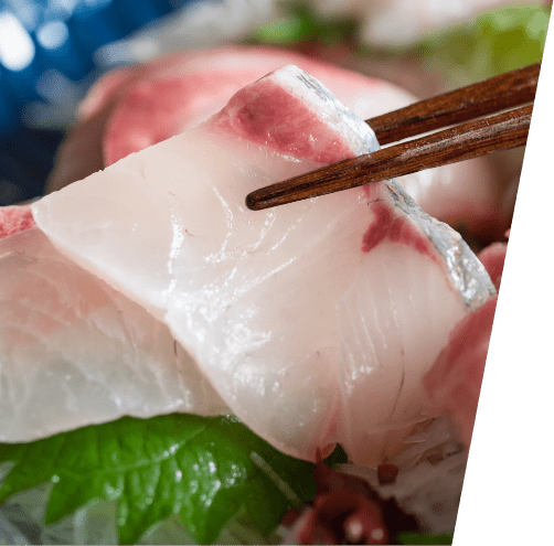 光美水産のカンパチの特徴は、なんと言っても『味』。焼酎粕を与えて育てるという独自の養殖方法で商標権を出願中、光美水産でしか出せない旨味コクを実現しました。
