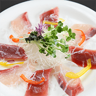 クセが無く、程よい脂が乗ったカンパチに、酸味の効いたソースの相性は抜群。見た目もおしゃれなカルパッチョはおもてなしにもぴったり。こりっとした歯応えで、味も見た目も大満足の逸品です。